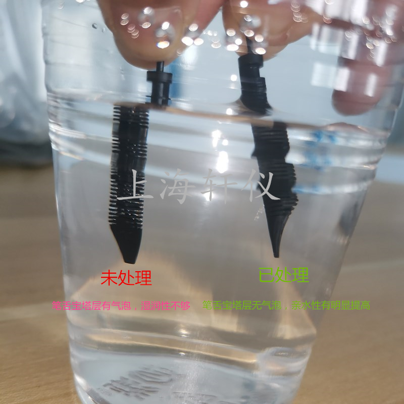 采用等離子體對(duì)筆舌表面處理,是通過氣體為介質(zhì)對(duì)筆舌表面進(jìn)行清洗,可以改善材料表面潤濕性,具有處理操作簡單,容易控制,處理時(shí)間短,處理成本低,不需要化學(xué)試劑,不產(chǎn)生有害化學(xué)試劑的排放,減少了環(huán)境污染等優(yōu)點(diǎn)。