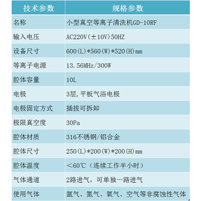 10L射頻真空等離子清洗機_實驗室等離子設(shè)備_科研機構(gòu)等離子表面處理機GD-10RF 技術(shù)參數(shù)